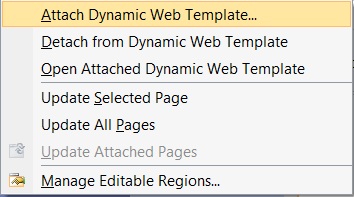 1. Click on Attach Dynamic Web Template