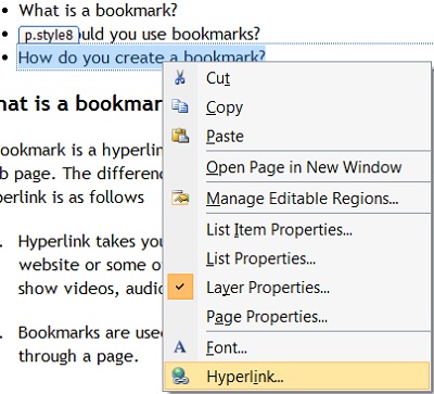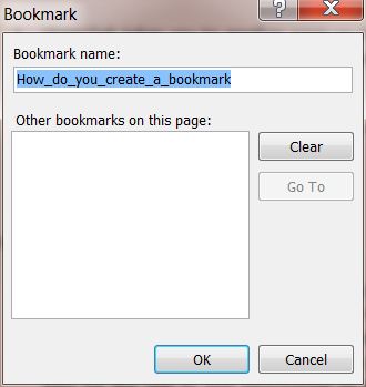 Now we are going to make the text "How do you create a bookmark?" a clickable link to a section on this page