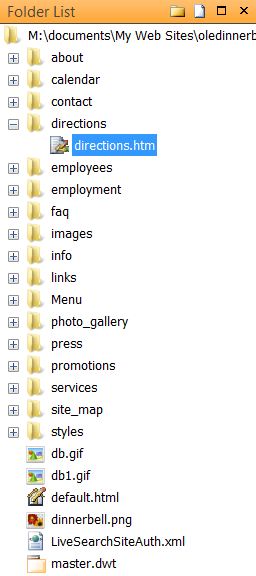 Create pages - Allows you to create a webpage under the folder you have highlighted