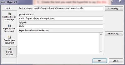 You can have the hyperlink say anything you want. You can also make a picture a hyperlink. To create a hyperlink, do the following