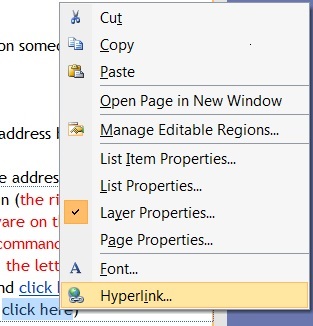 Put the website address in the box titled Address (for this example, we making click here take us to Microsoft's website)