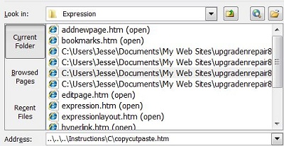 Scroll to the folder that has the page you want the hyperlink to take you to and select the page.(for this example, the hyperlink is going to be taking us to the copycutpaste webpage)