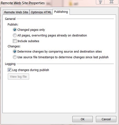 The preferred method to upload the files is to click on the publish web site button and allow it to determine what files have changed since the last publish has been done.